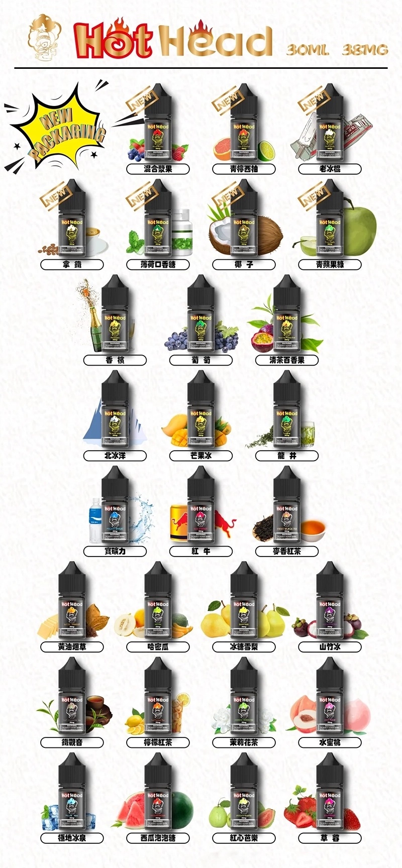 專為小煙而生,拒絕平庸口感!來自美國的手工霧化品牌 HotHead 爆脾氣。這款高品質 30ml 尼古丁鹽小煙油,憑藉其獨特的 38mg/ml 高濃度配方,精準定位重度電子菸用戶與口味挑剔的資深玩家。爆脾氣煙油結合了美式調香的豪放與細緻的層次堆疊,讓每一口吸入都充滿鮮明的驚喜。無論是沁涼的果香,還是韻味悠長的茶系,HotHead 都能提供飽滿紮實的擊喉感,重新定義您的 Vaping 享受。